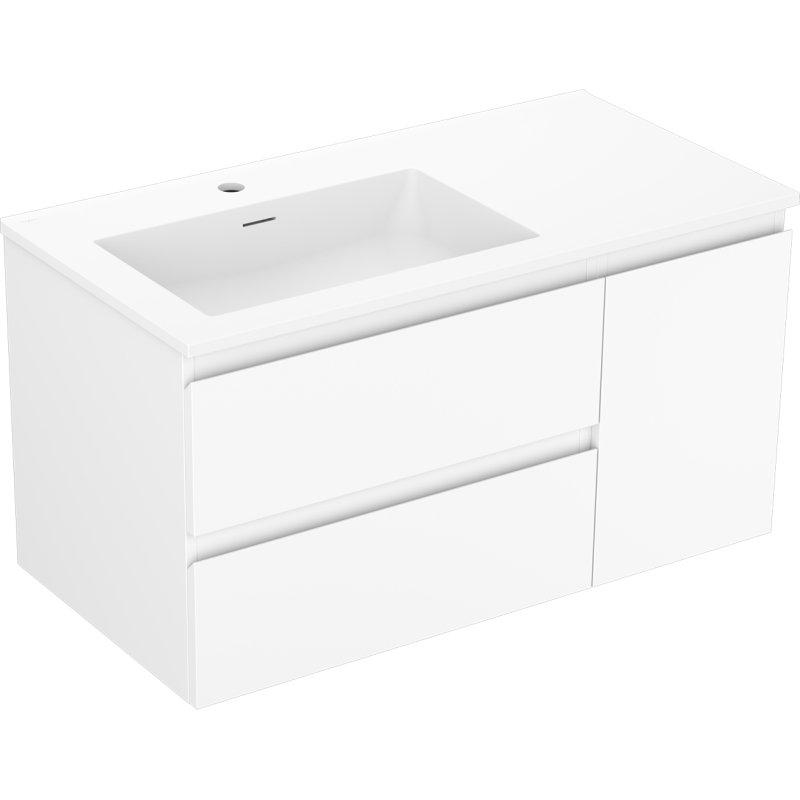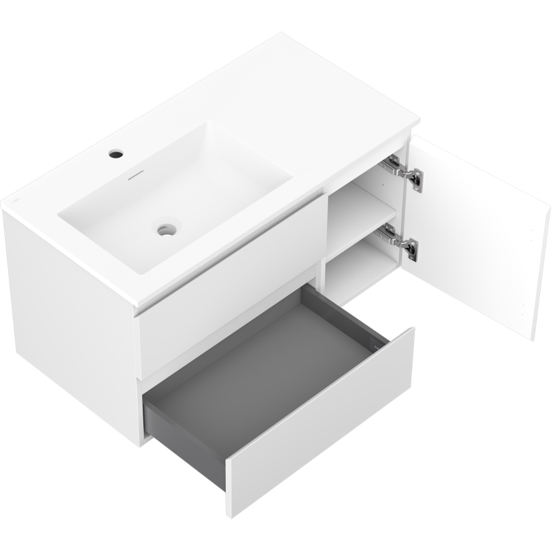 Koupelnová skříňka Mexen Orio 90 cm s umyvadlem Otis vlevo, 2S, 1D, matná bílá - 91A13-09047-3-BBFFF01-W18L01