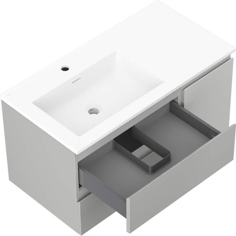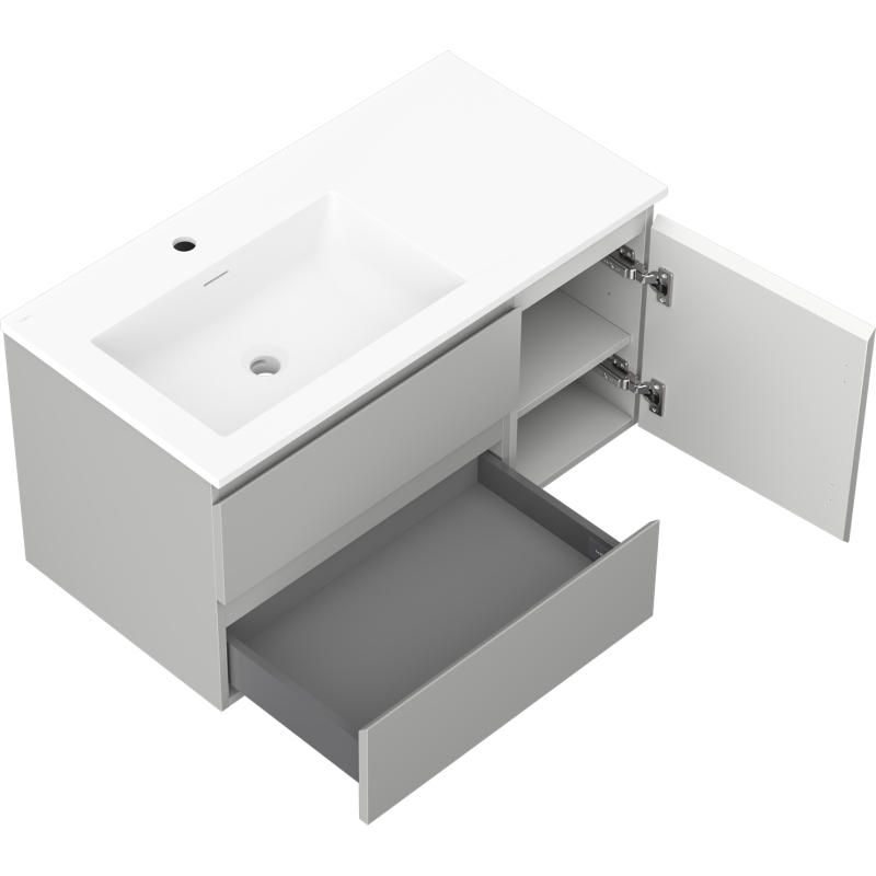 Koupelnová skříňka Mexen Orio 90 cm s umyvadlem Otis vlevo, 2S, 1D, matná šedá/matná bílá - 91A13-09047-3-BBFFF62-W18L01