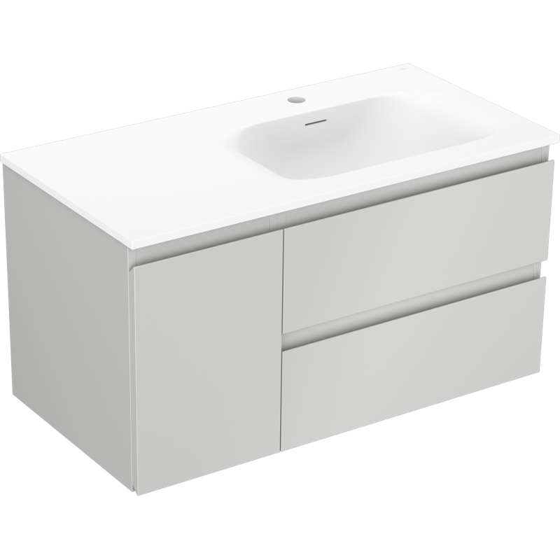 Koupelnová skříňka Mexen Orio 90 cm s umyvadlem Vela pravá, 2S, 1D, matná šedá/matná bílá - 91A13-09047-3-BBFFF62-W23P01