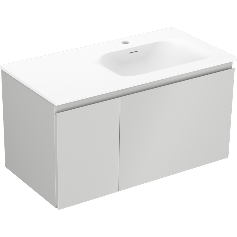 Koupelnová skříňka Mexen Orio 90 cm s umyvadlem Vela pravé, 1S, 1D, matná šedá/matná bílá - 91A13-09047-3-BBFF62-W23P01