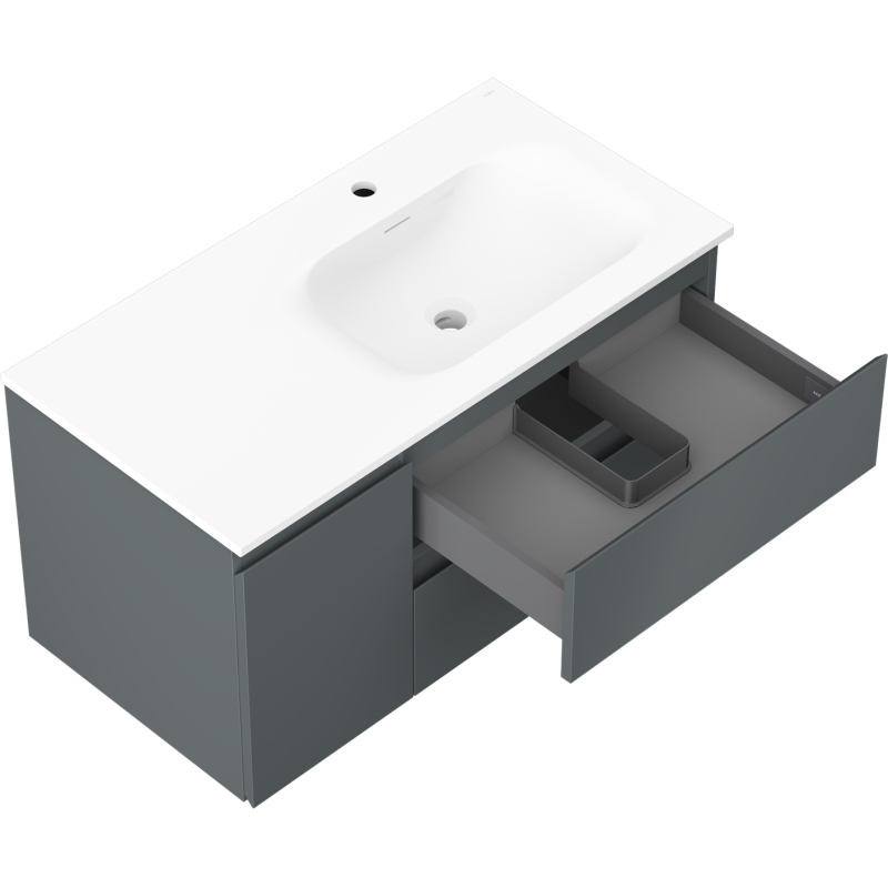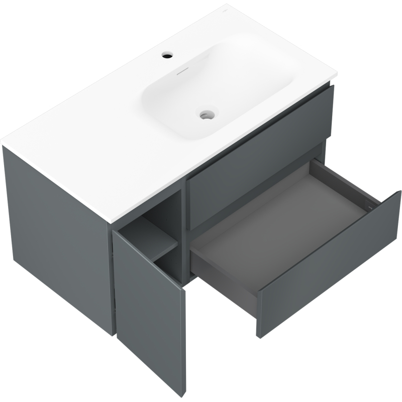 Koupelnová skříňka Mexen Orio 90 cm s umyvadlem Vela pravé, 2S, 1D, grafit matný/bílá matná - 91A13-09047-3-BBFFF66-W23P01