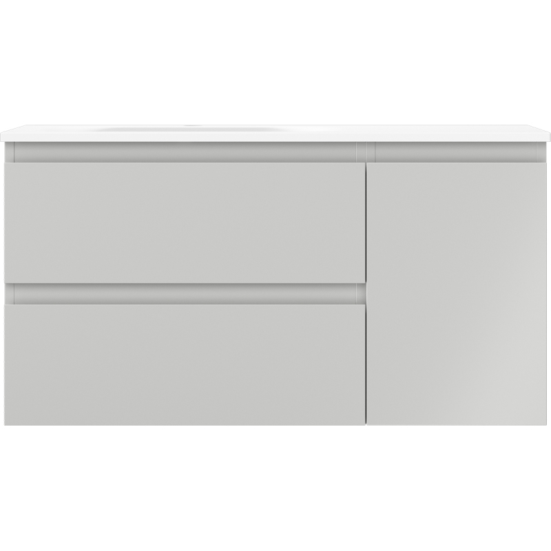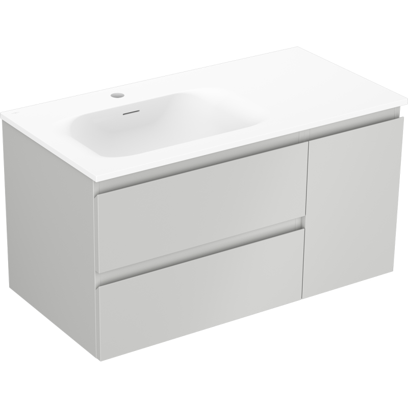 Koupelnová skříňka Mexen Orio 90 cm s umyvadlem Vela vlevo, 2S, 1D, matná šedá/matná bílá - 91A13-09047-3-BBFFF62-W23L01
