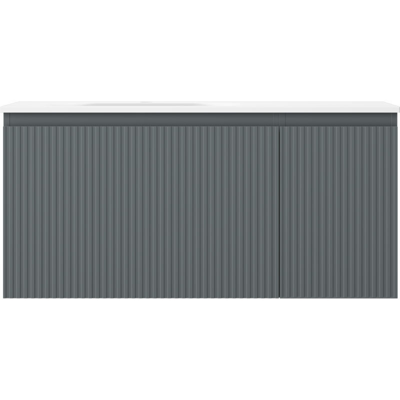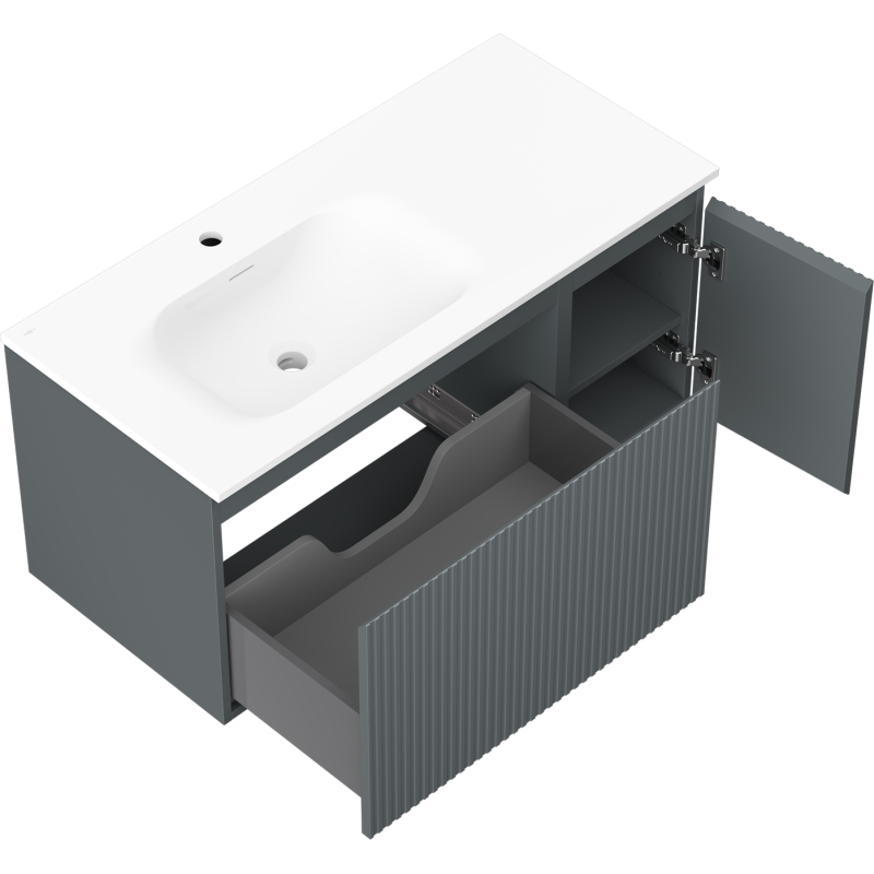 Koupelnová skříňka Mexen Rivel 100 cm s levým umyvadlem Vela, 1S, 1D, drážkovaná, grafit matný/bílá matná - 91A23-10047-3-BBFF66-W23L01