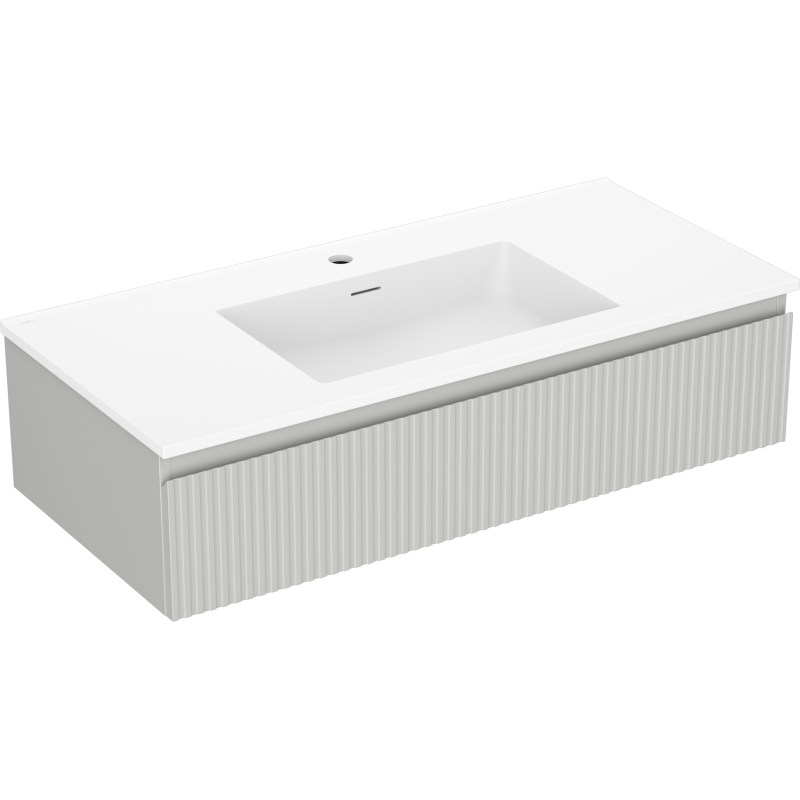 Koupelnová skříňka Mexen Rivel 100 cm s umyvadlem Otis, 1 zásuvka, drážkovaná, matně šedá/matně bílá - 91A20-10023-1-BF62-W18M01