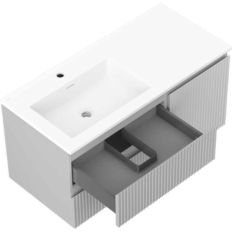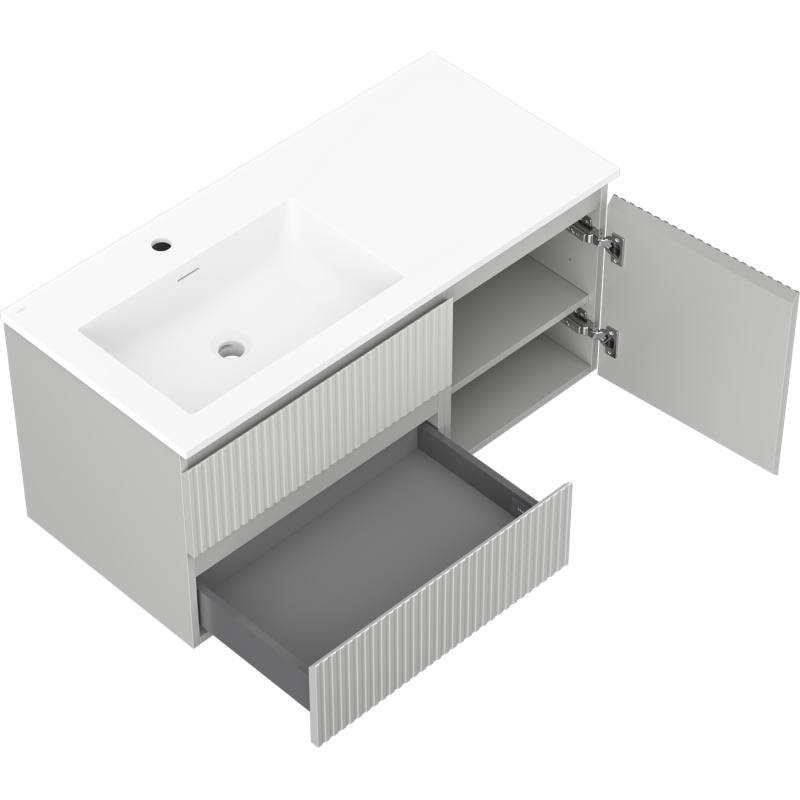 Koupelnová skříňka Mexen Rivel 100 cm s umyvadlem Otis vlevo, 2S, 1D, drážkovaná, matná šedá/matná bílá - 91A23-10047-3-BBFFF62-W18L01