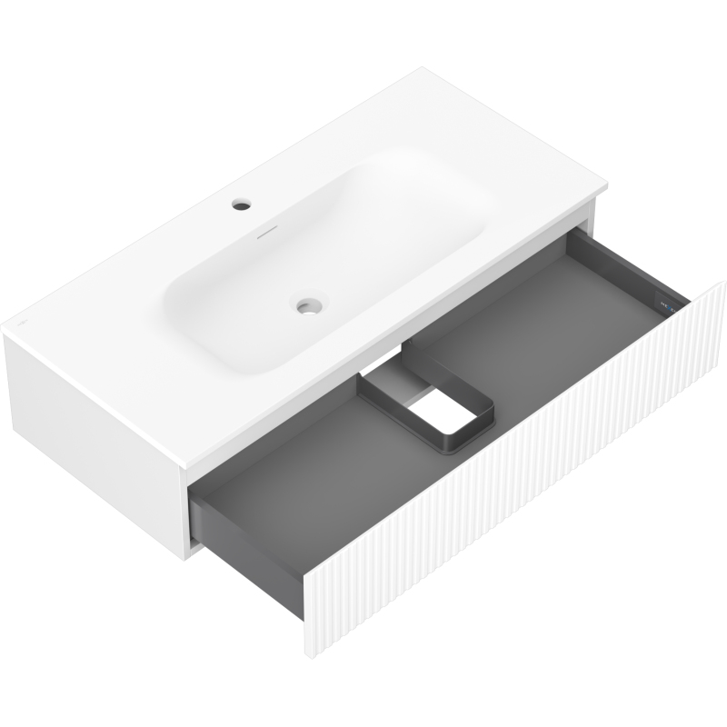 Koupelnová skříňka Mexen Rivel 100 cm s umyvadlem Vela, 1 zásuvka, drážkovaná, matná bílá - 91A20-10023-1-BF01-W23M01