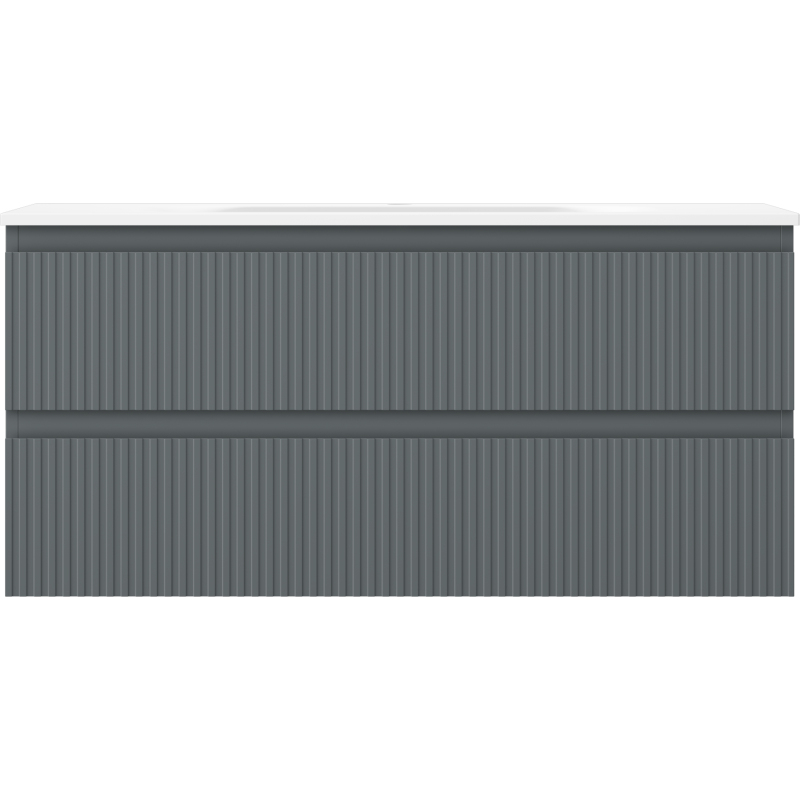 Koupelnová skříňka Mexen Rivel 100 cm s umyvadlem Vela, 2 zásuvky, drážkovaná, grafit matný/bílá matná - 91A20-10047-2-BFF66-W23M0
