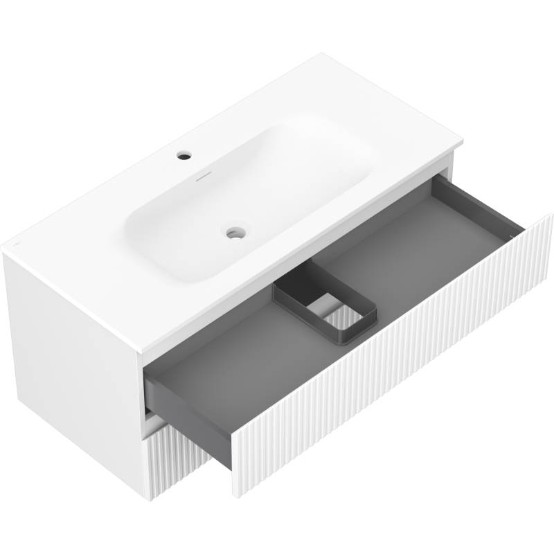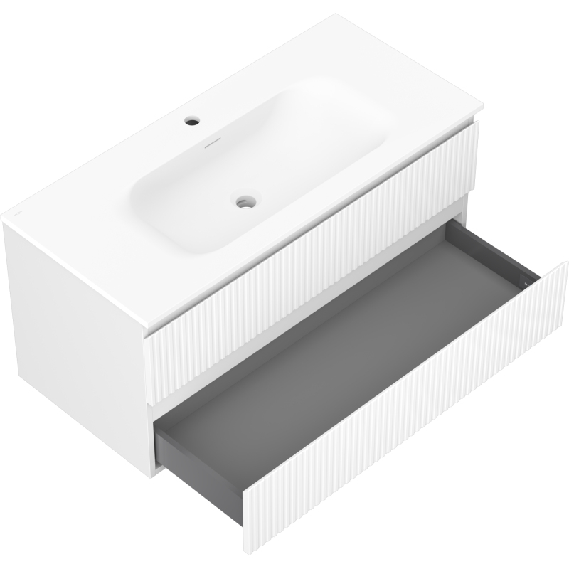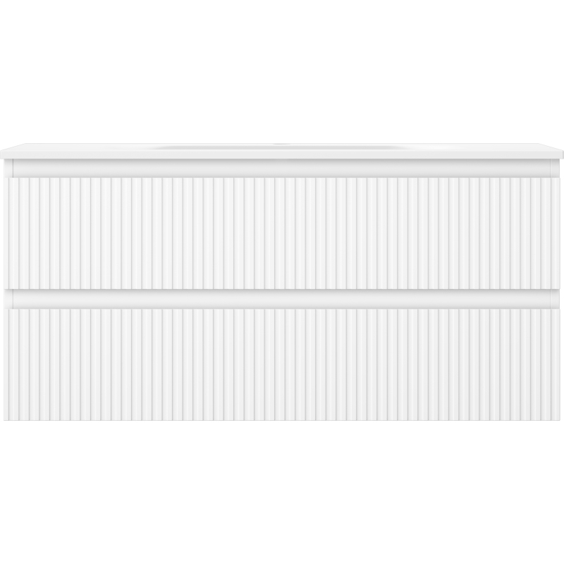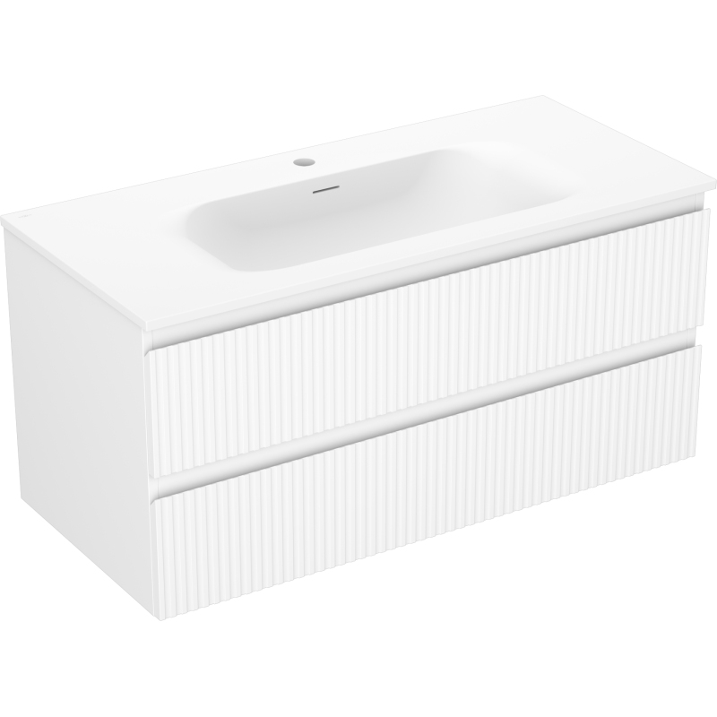 Koupelnová skříňka Mexen Rivel 100 cm s umyvadlem Vela, 2 zásuvky, drážkovaná, matná bílá - 91A20-10047-2-BFF01-W23M01