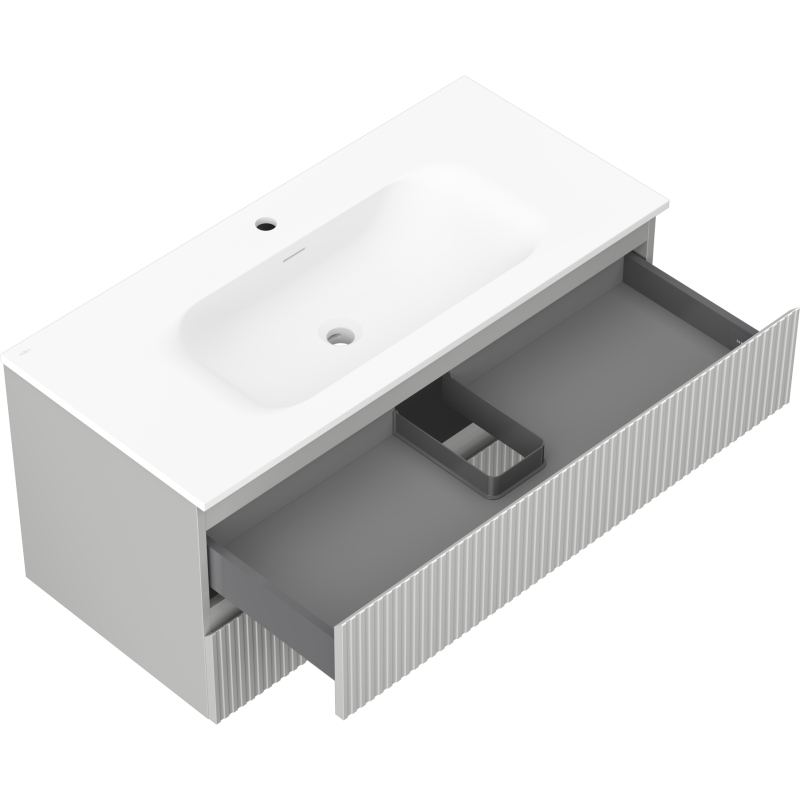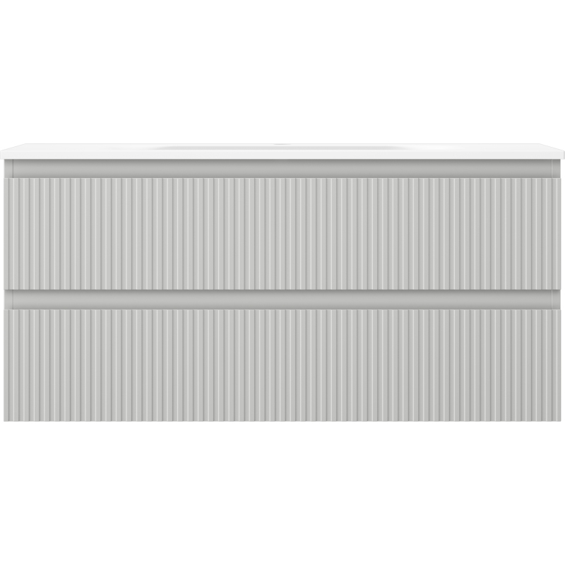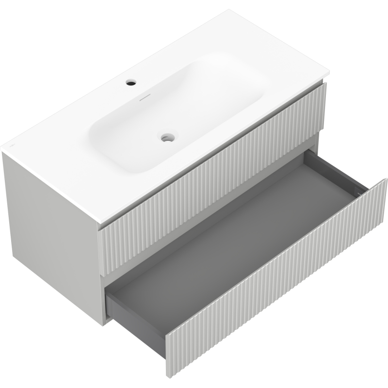 Koupelnová skříňka Mexen Rivel 100 cm s umyvadlem Vela, 2 zásuvky, drážkovaná, matně šedá/matně bílá - 91A20-10047-2-BFF62-W23M01