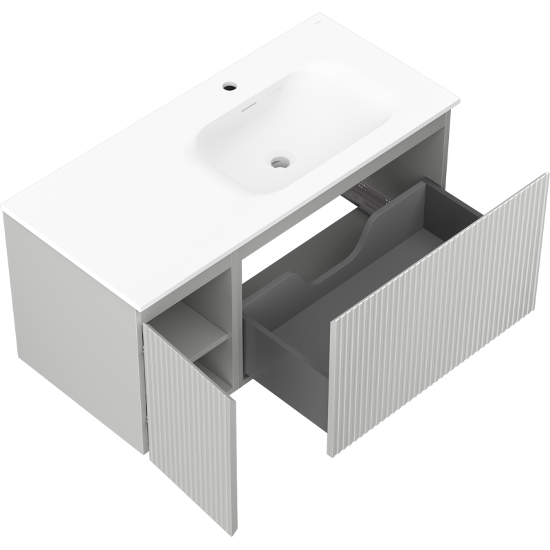 Koupelnová skříňka Mexen Rivel 100 cm s umyvadlem Vela pravé, 1S, 1D, drážkovaná, matná šedá/matná bílá - 91A23-10047-3-BBFF62-W23P01