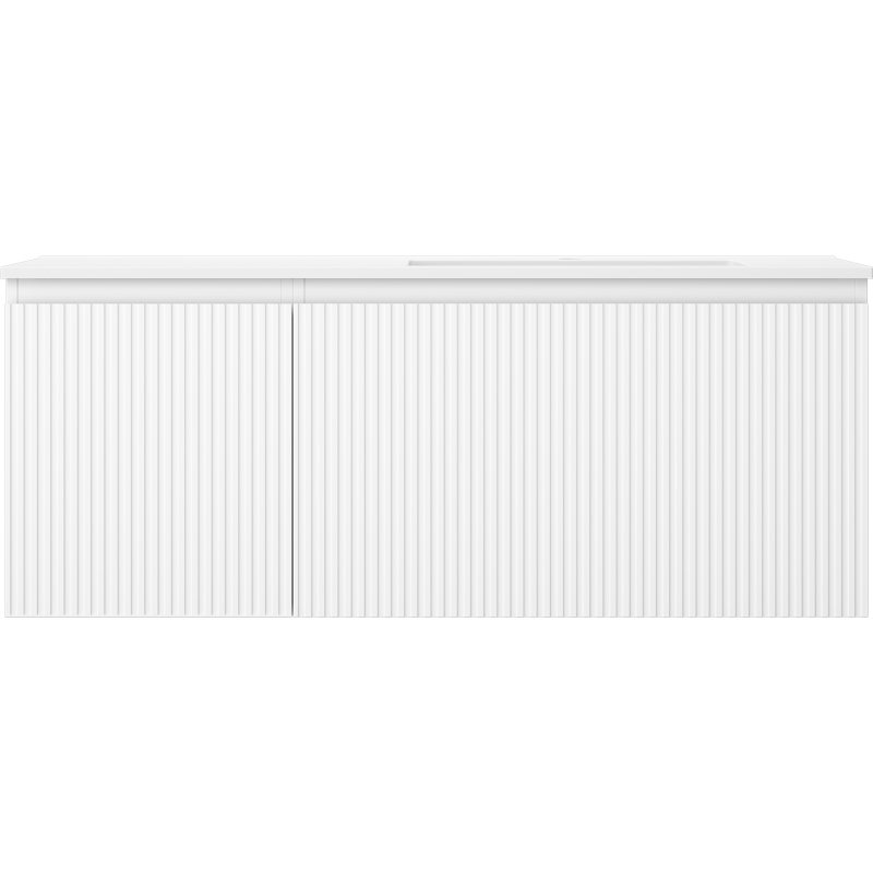 Koupelnová skříňka Mexen Rivel 120 cm s umyvadlem Otis pravé, 1S, 1D, drážkovaná, matná bílá - 91A23-12047-3-BBFF01-W18P01
