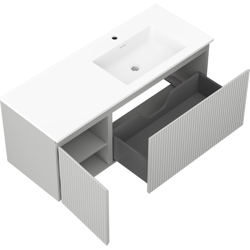 Koupelnová skříňka Mexen Rivel 120 cm s umyvadlem Otis pravé, 1S, 1D, drážkovaná, matná šedá/matná bílá - 91A23-12047-3-BBFF62-W18P01