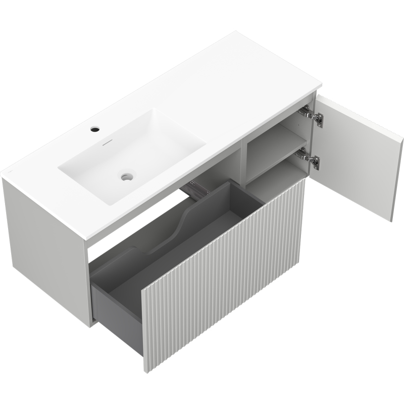 Koupelnová skříňka Mexen Rivel 120 cm s umyvadlem Otis vlevo, 1S, 1D, drážkovaná, matná šedá/matná bílá - 91A23-12047-3-BBFF62-W18L01