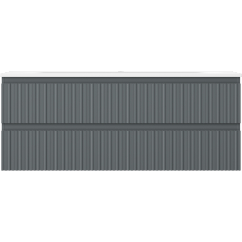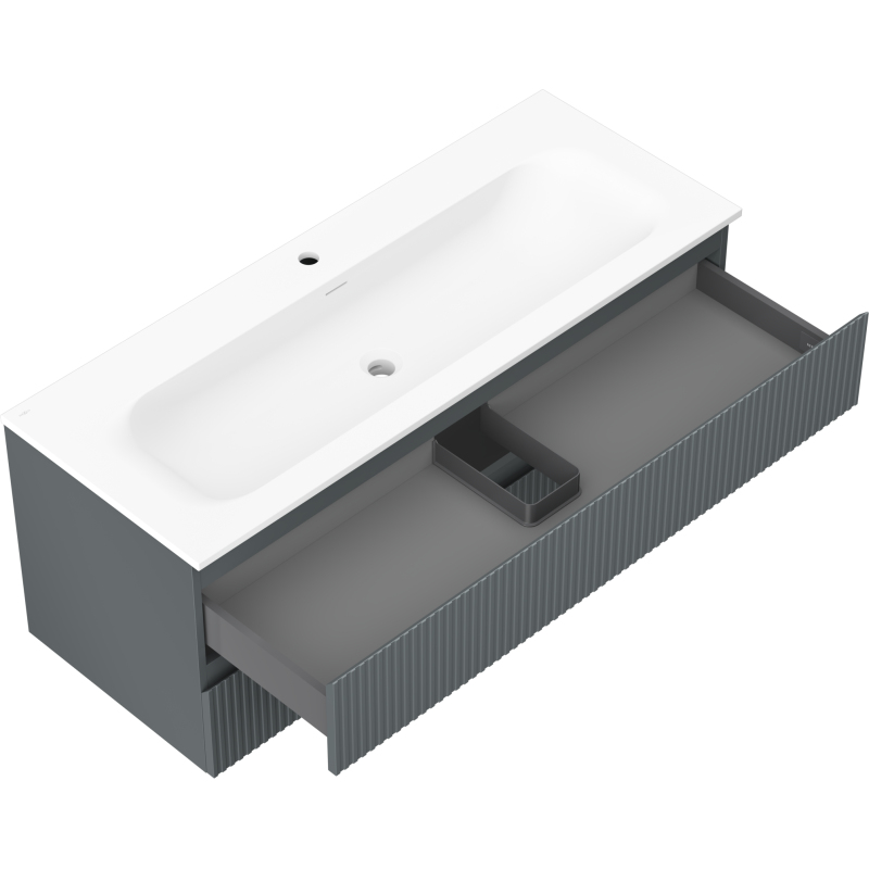 Koupelnová skříňka Mexen Rivel 120 cm s umyvadlem Vela, 2 zásuvky, drážkovaná, grafit matný/bílá matná - 91A20-12047-2-BFF66-W23M