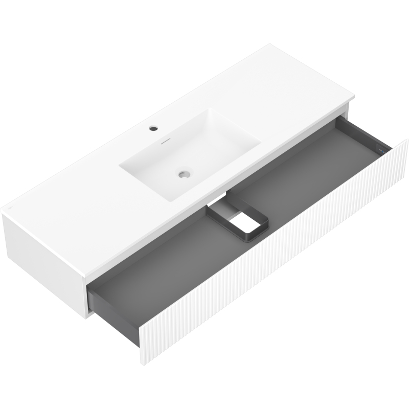 Koupelnová skříňka Mexen Rivel 140 cm s umyvadlem Otis, 1 zásuvka, drážkovaná, matná bílá - 91A20-14023-1-BF01-W18M01