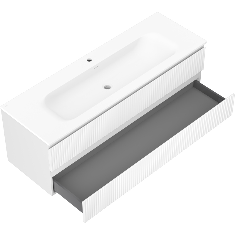 Koupelnová skříňka Mexen Rivel 140 cm s umyvadlem Vela, 2 zásuvky, drážkovaná, matná bílá - 91A20-14047-2-BFF01-W23M01