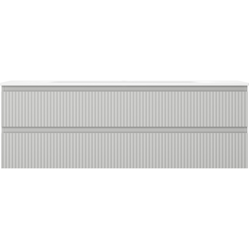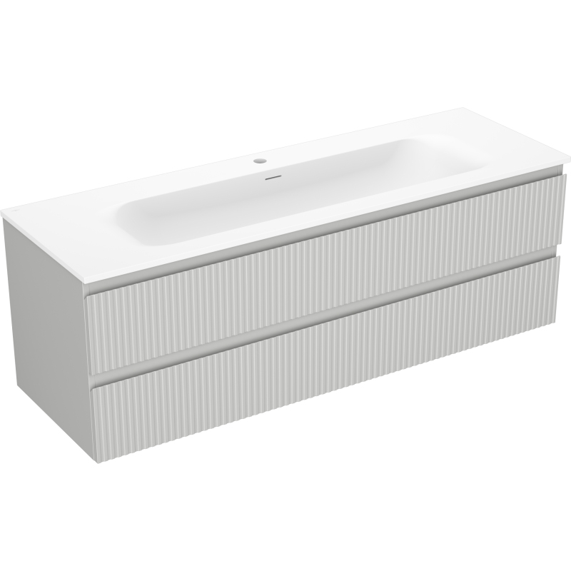 Koupelnová skříňka Mexen Rivel 140 cm s umyvadlem Vela, 2 zásuvky, drážkovaná, matně šedá/matně bílá - 91A20-14047-2-BFF62-W23M0