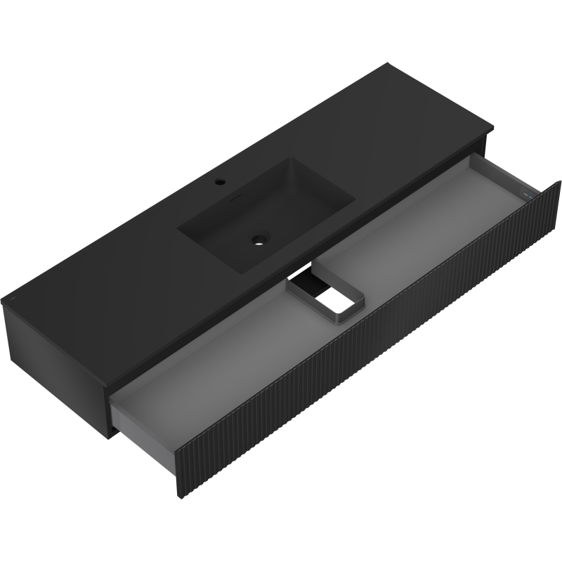 Koupelnová skříňka Mexen Rivel 160 cm s umyvadlem Otis, 1 zásuvka, drážkovaná, matná černá - 91A20-16023-1-BF71-W18M71