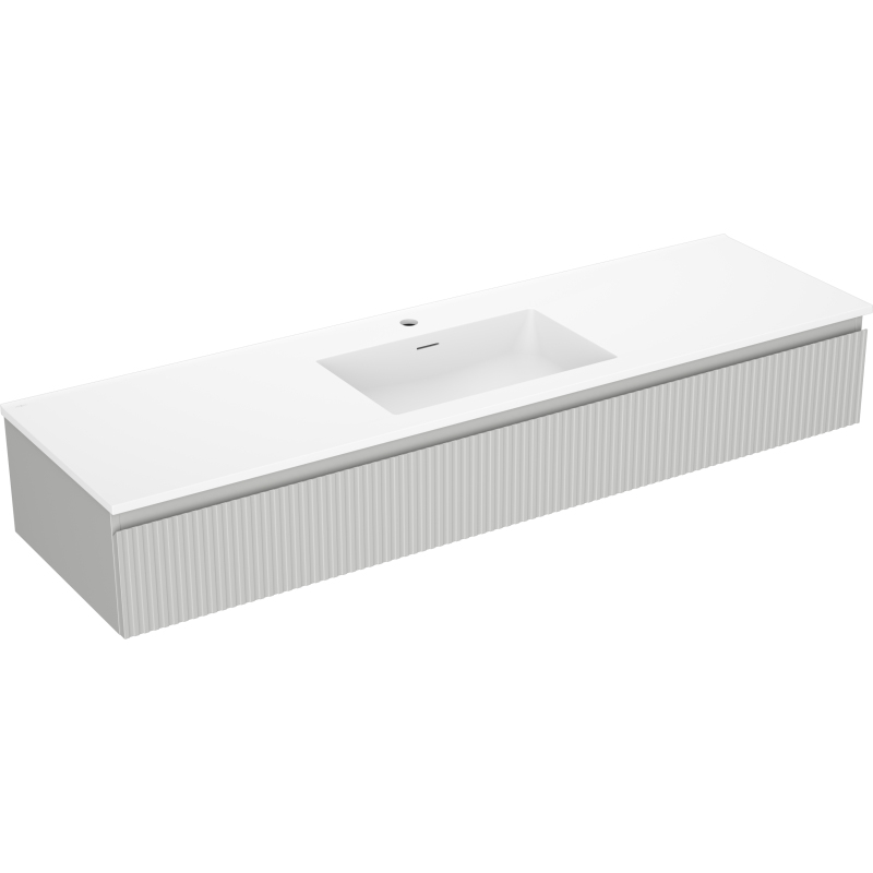 Koupelnová skříňka Mexen Rivel 160 cm s umyvadlem Otis, 1 zásuvka, drážkovaná, matně šedá/matně bílá - 91A20-16023-1-BF62-W18M01