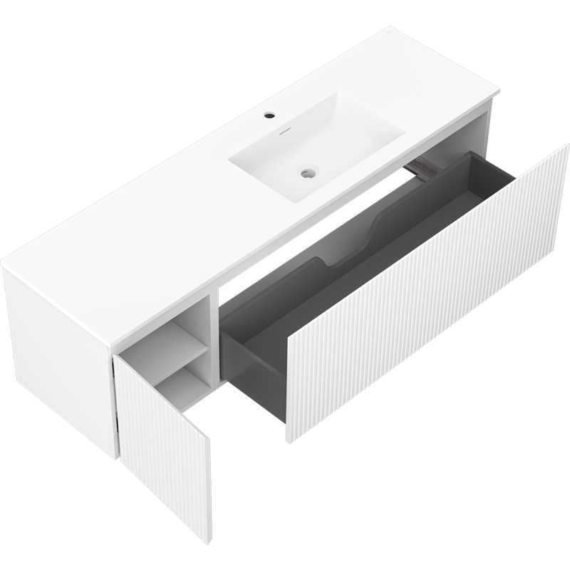 Koupelnová skříňka Mexen Rivel 160 cm s umyvadlem Otis pravým, 1S, 1D, drážkovaná, matná bílá - 91A23-16047-3-BBFF01-W18P01
