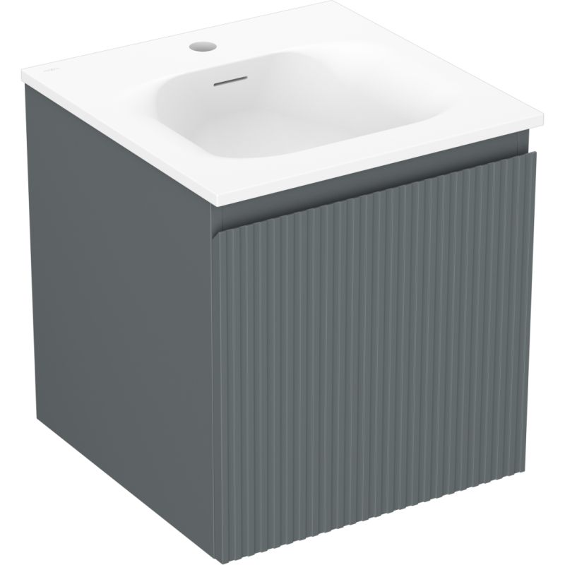 Koupelnová skříňka Mexen Rivel 45 cm s umyvadlem Vela, 1 zásuvka, drážkovaná, grafit matný/bílá matná - 91A20-04547-1-BF66-W23M01
