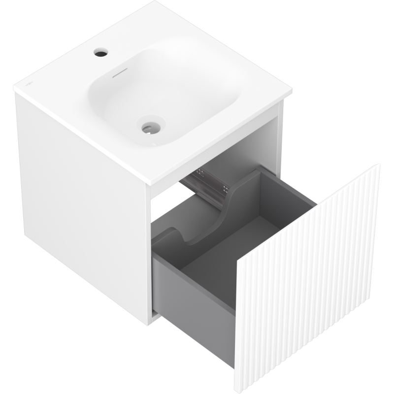 Koupelnová skříňka Mexen Rivel 45 cm s umyvadlem Vela, 1 zásuvka, drážkovaná, matná bílá - 91A20-04547-1-BF01-W23M01