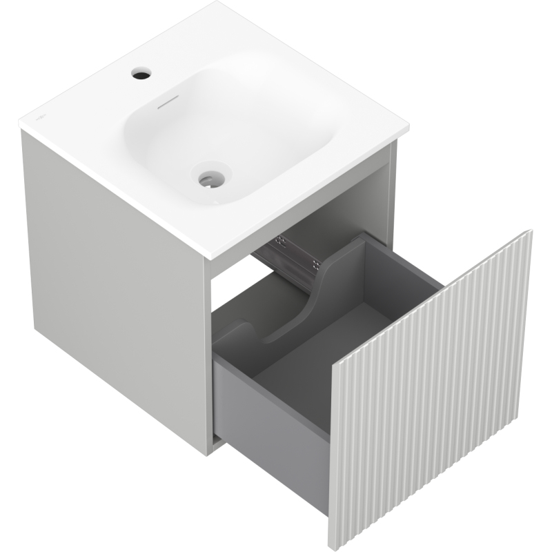 Koupelnová skříňka Mexen Rivel 45 cm s umyvadlem Vela, 1 zásuvka, drážkovaná, matně šedá/matně bílá - 91A20-04547-1-BF62-W23M01