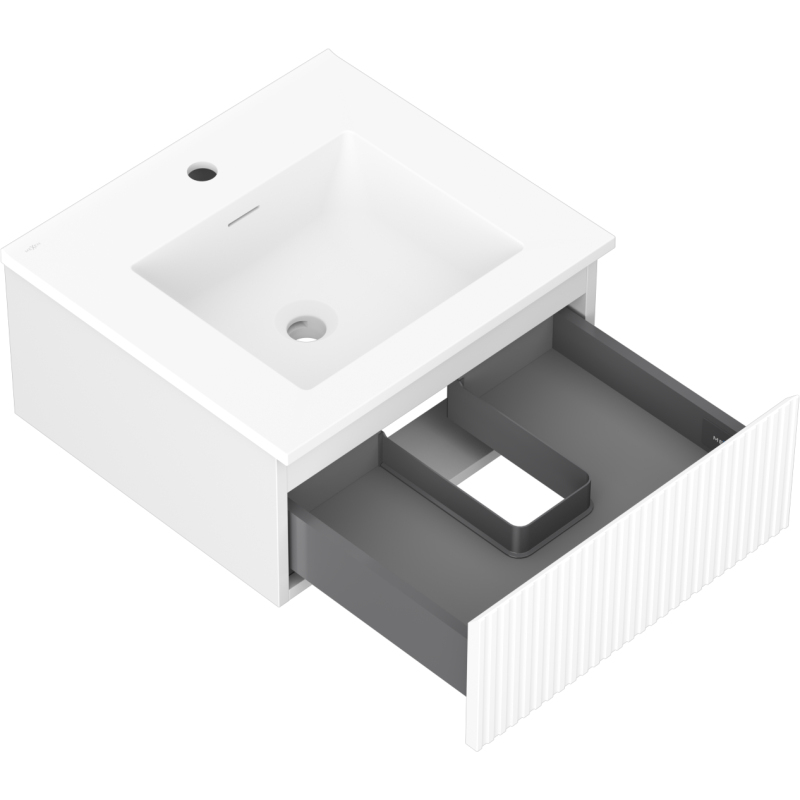Koupelnová skříňka Mexen Rivel 50 cm s umyvadlem Otis, 1 zásuvka, drážkovaná, matná bílá - 91A20-05023-1-BF01-W18M01