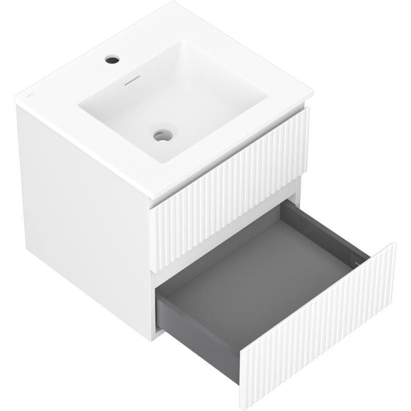 Koupelnová skříňka Mexen Rivel 50 cm s umyvadlem Otis, 2 zásuvky, drážkovaná, matná bílá - 91A20-05047-2-BFF01-W18M01