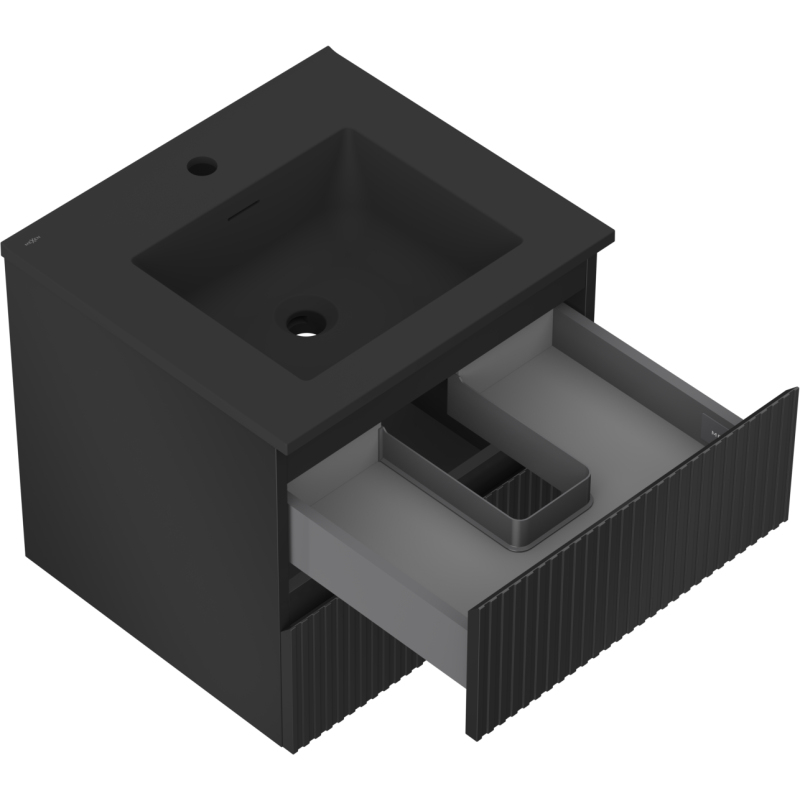 Koupelnová skříňka Mexen Rivel 50 cm s umyvadlem Otis, 2 zásuvky, drážkovaná, matná černá - 91A20-05047-2-BFF71-W18M71