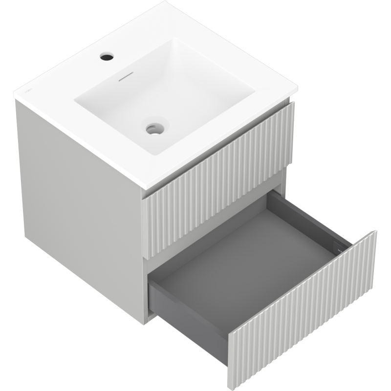 Koupelnová skříňka Mexen Rivel 50 cm s umyvadlem Otis, 2 zásuvky, drážkovaná, matně šedá/matně bílá - 91A20-05047-2-BFF62-W18M01