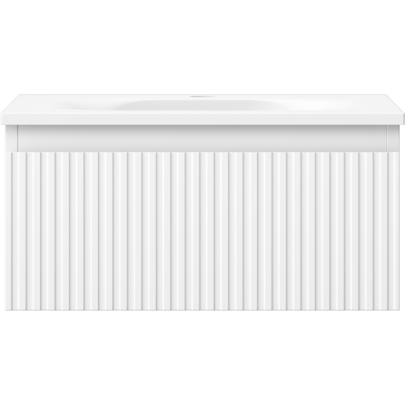 Koupelnová skříňka Mexen Rivel 50 cm s umyvadlem Vela, 1 zásuvka, drážkovaná, matná bílá - 91A20-05023-1-BF01-W23M01