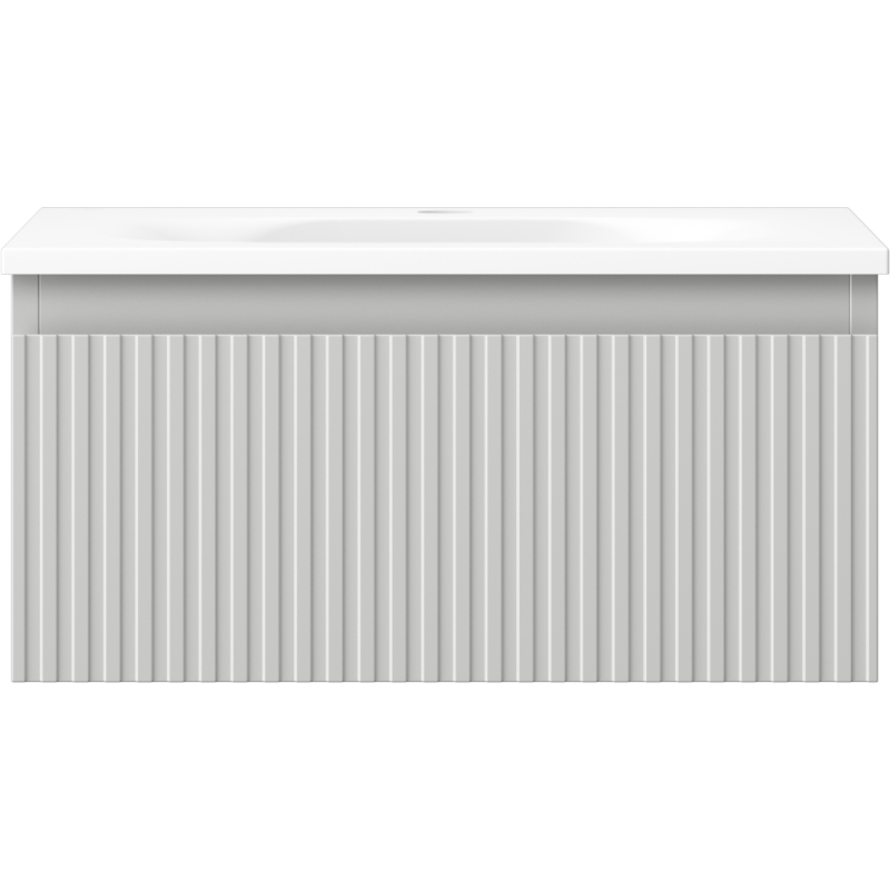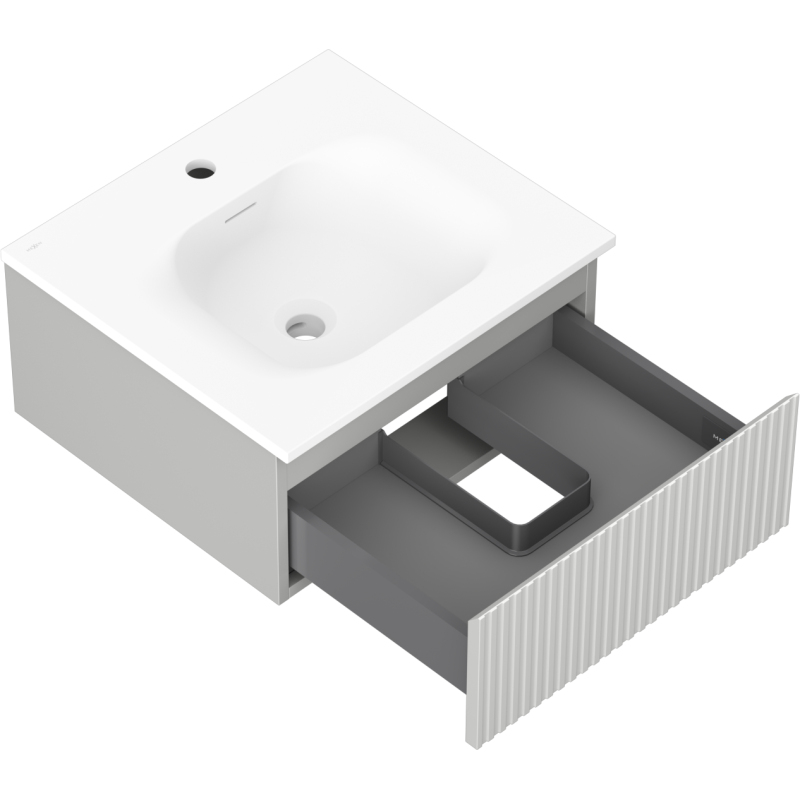Koupelnová skříňka Mexen Rivel 50 cm s umyvadlem Vela, 1 zásuvka, drážkovaná, matně šedá/matně bílá - 91A20-05023-1-BF62-W23M01