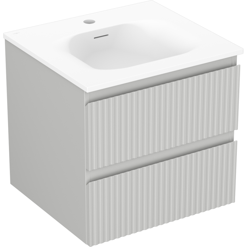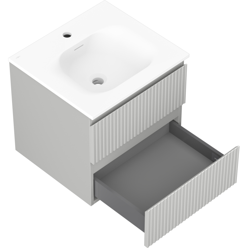 Koupelnová skříňka Mexen Rivel 50 cm s umyvadlem Vela, 2 zásuvky, drážkovaná, matně šedá/matně bílá - 91A20-05047-2-BFF62-W23M01