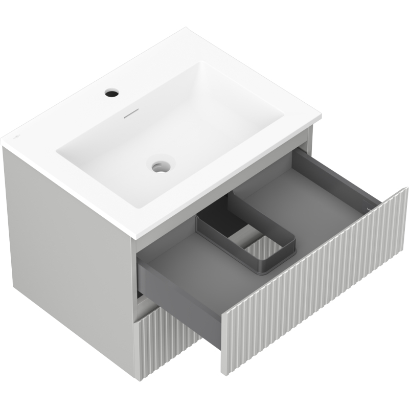 Koupelnová skříňka Mexen Rivel 60 cm s umyvadlem Otis, 2 zásuvky, drážkovaná, matně šedá/matně bílá - 91A20-06047-2-BFF62-W18M01