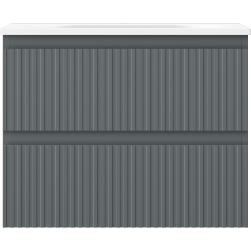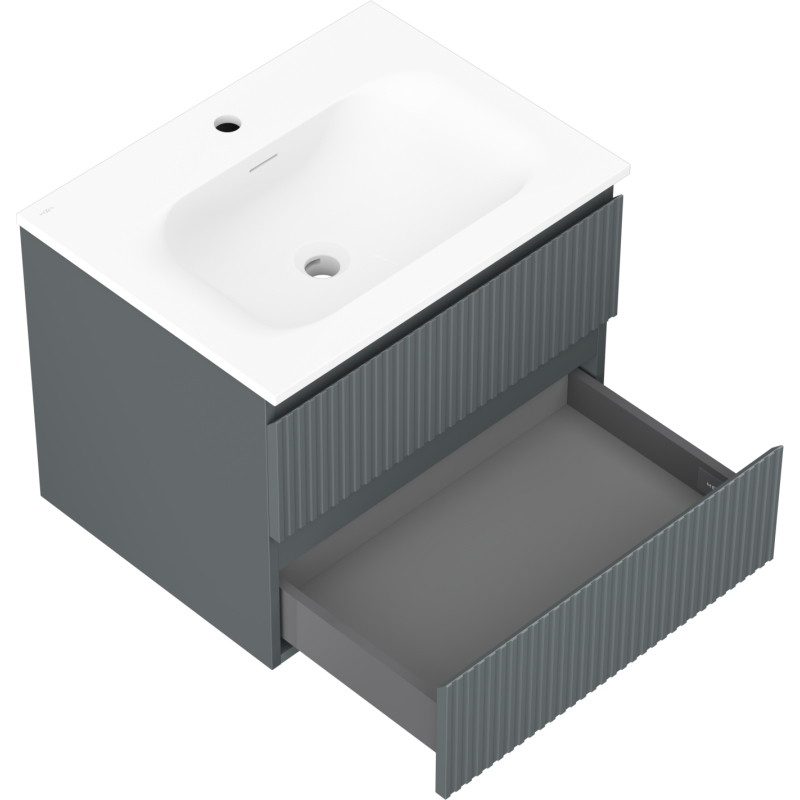 Koupelnová skříňka Mexen Rivel 60 cm s umyvadlem Vela, 2 zásuvky, drážkovaná, grafit matný/bílá matná - 91A20-06047-2-BFF66-W23M0