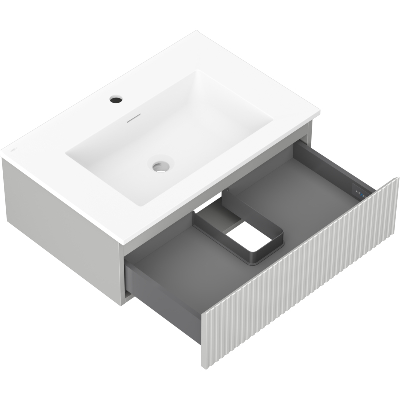 Koupelnová skříňka Mexen Rivel 70 cm s umyvadlem Otis, 1 zásuvka, drážkovaná, matně šedá/matně bílá - 91A20-07023-1-BF62-W18M01