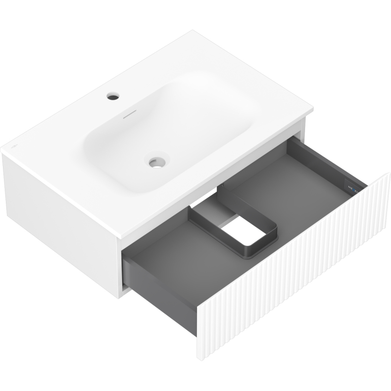 Koupelnová skříňka Mexen Rivel 70 cm s umyvadlem Vela, 1 zásuvka, drážkovaná, matná bílá - 91A20-07023-1-BF01-W23M01