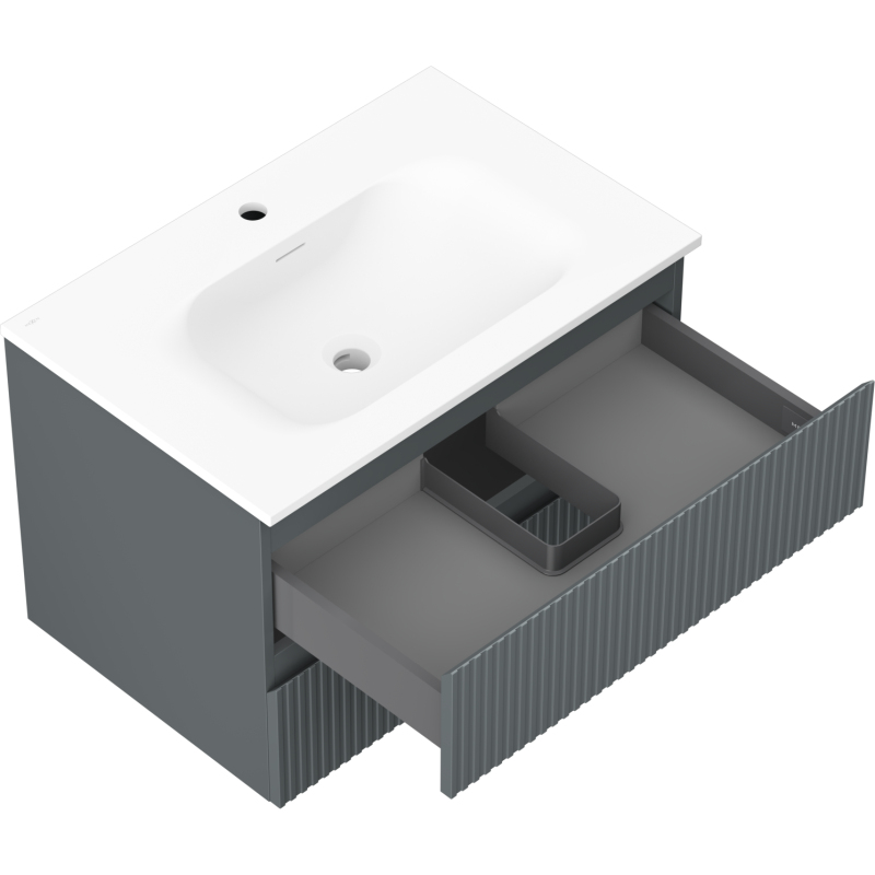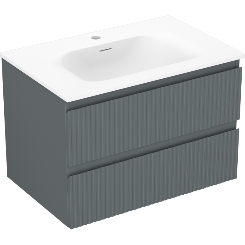 Koupelnová skříňka Mexen Rivel 70 cm s umyvadlem Vela, 2 zásuvky, drážkovaná, grafit matný/bílá matná - 91A20-07047-2-BFF66-W23M0