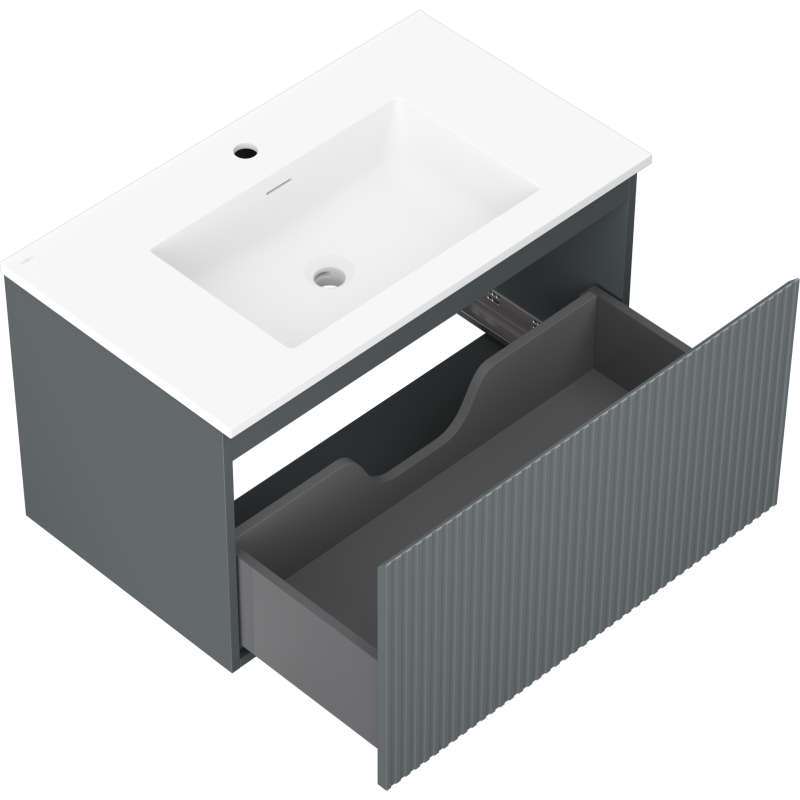 Koupelnová skříňka Mexen Rivel 80 cm s umyvadlem Otis, 1 zásuvka, drážkovaná, grafit matný/bílá matná - 91A20-08047-1-BF66-W18M01