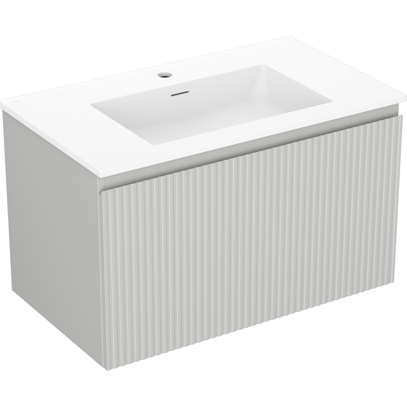 Koupelnová skříňka Mexen Rivel 80 cm s umyvadlem Otis, 1 zásuvka, drážkovaná, matně šedá/matně bílá - 91A20-08047-1-BF62-W18M01