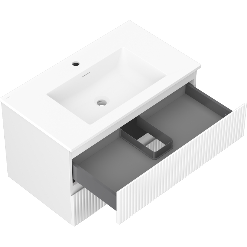 Koupelnová skříňka Mexen Rivel 80 cm s umyvadlem Otis, 2 zásuvky, drážkovaná, matná bílá - 91A20-08047-2-BFF01-W18M01