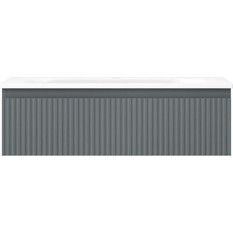 Specifikace produktu: Rozměry skříňky: Šířka: 80 cm Hloubka: 46 cm Výška: 23,5 cm Barva korpusu: Matný grafit Materiál korpusu: Lakovaná deska Barva čela: Matný grafit Materiál čela: Lakovaná MDF deska Struktura čela: Drážkovaná Počet zásuvek: 1 Prostorná zásuvka s funkcí tlumeného dovírání Povrch odolný vůči UV záření Rozměry umyvadla: Šířka: 81 cm Hloubka: 46,5 cm Výška: 16,5 cm Barva umyvadla: Matná bílá Materiál umyvadla: Konglomerát Otvor pro přepad: Ano Otvor pro baterii: Ano Smontovaný výrobek