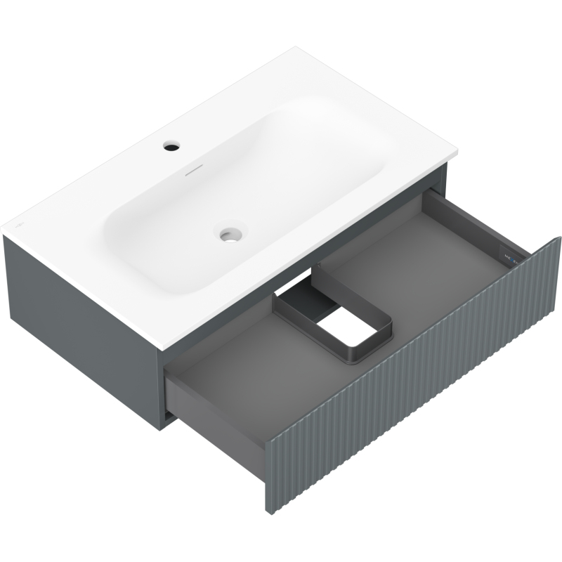 Koupelnová skříňka Mexen Rivel 80 cm s umyvadlem Vela, 1 zásuvka, drážkovaná, grafit matný/bílá matná - 91A20-08023-1-BF66-W23M01