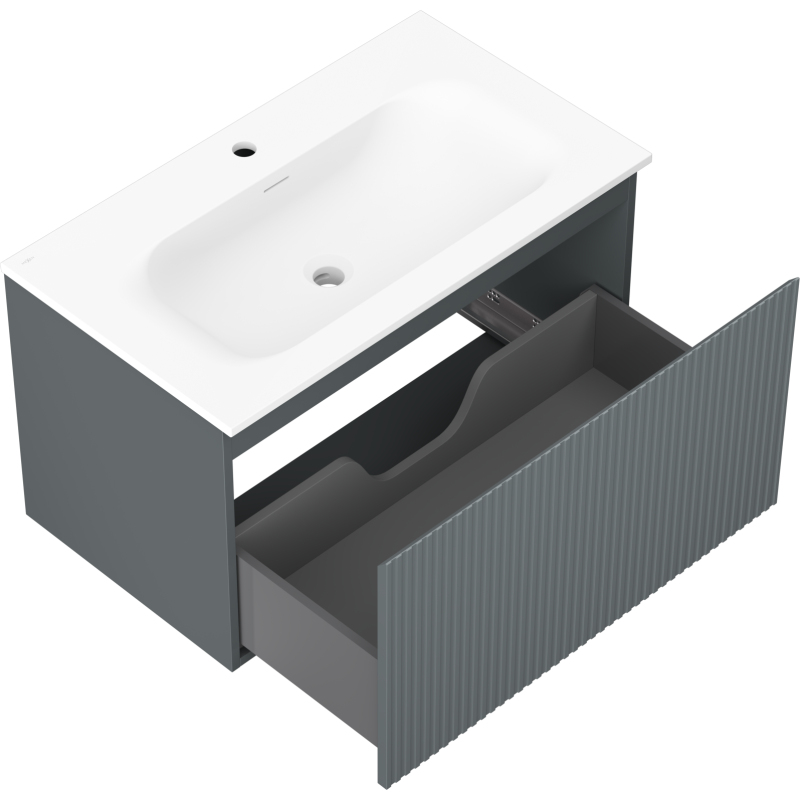 Koupelnová skříňka Mexen Rivel 80 cm s umyvadlem Vela, 1 zásuvka, drážkovaná, grafit matný/bílá matná - 91A20-08047-1-BF66-W23M01