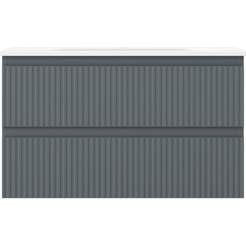 Koupelnová skříňka Mexen Rivel 80 cm s umyvadlem Vela, 2 zásuvky, drážkovaná, grafit matný/bílá matná - 91A20-08047-2-BFF66-W23M0