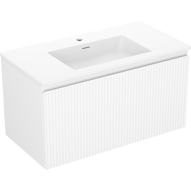 Koupelnová skříňka Mexen Rivel 90 cm s umyvadlem Otis, 1 zásuvka, drážkovaná, matná bílá - 91A20-09047-1-BF01-W18M01