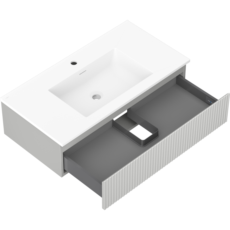 Koupelnová skříňka Mexen Rivel 90 cm s umyvadlem Otis, 1 zásuvka, drážkovaná, matně šedá/matně bílá - 91A20-09023-1-BF62-W18M01