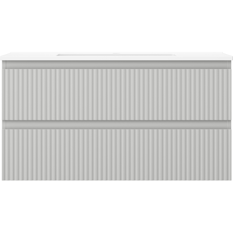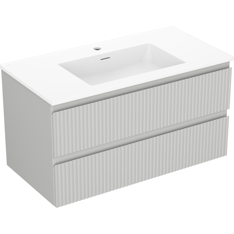 Koupelnová skříňka Mexen Rivel 90 cm s umyvadlem Otis, 2 zásuvky, drážkovaná, matně šedá/matně bílá - 91A20-09047-2-BFF62-W18M01