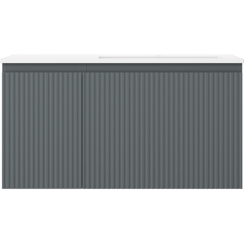 Koupelnová skříňka Mexen Rivel 90 cm s umyvadlem Otis pravé, 1S, 1D, drážkovaná, grafit matný/bílá matná - 91A23-09047-3-BBFF66-W18P01